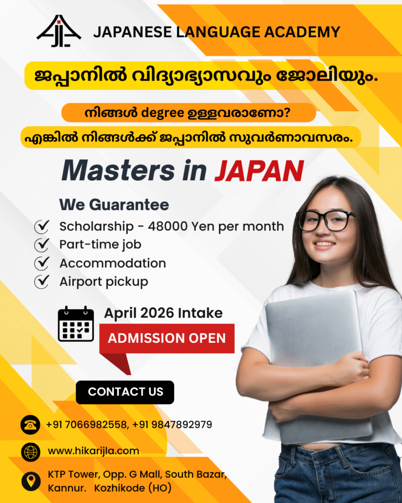 Japanese Language Academy, 3rd floor, KTP Tower, opposite G Mall, South Bazar, Talap, Kannur, Kerala 670002